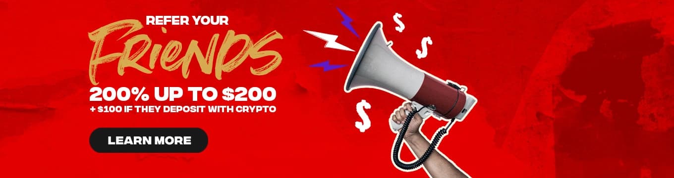 Our platform provides players with a Refer a Friend bonus that doubles their first deposit up to $200 and grants them an extra $75 when the deposit is made with cryptocurrencies.